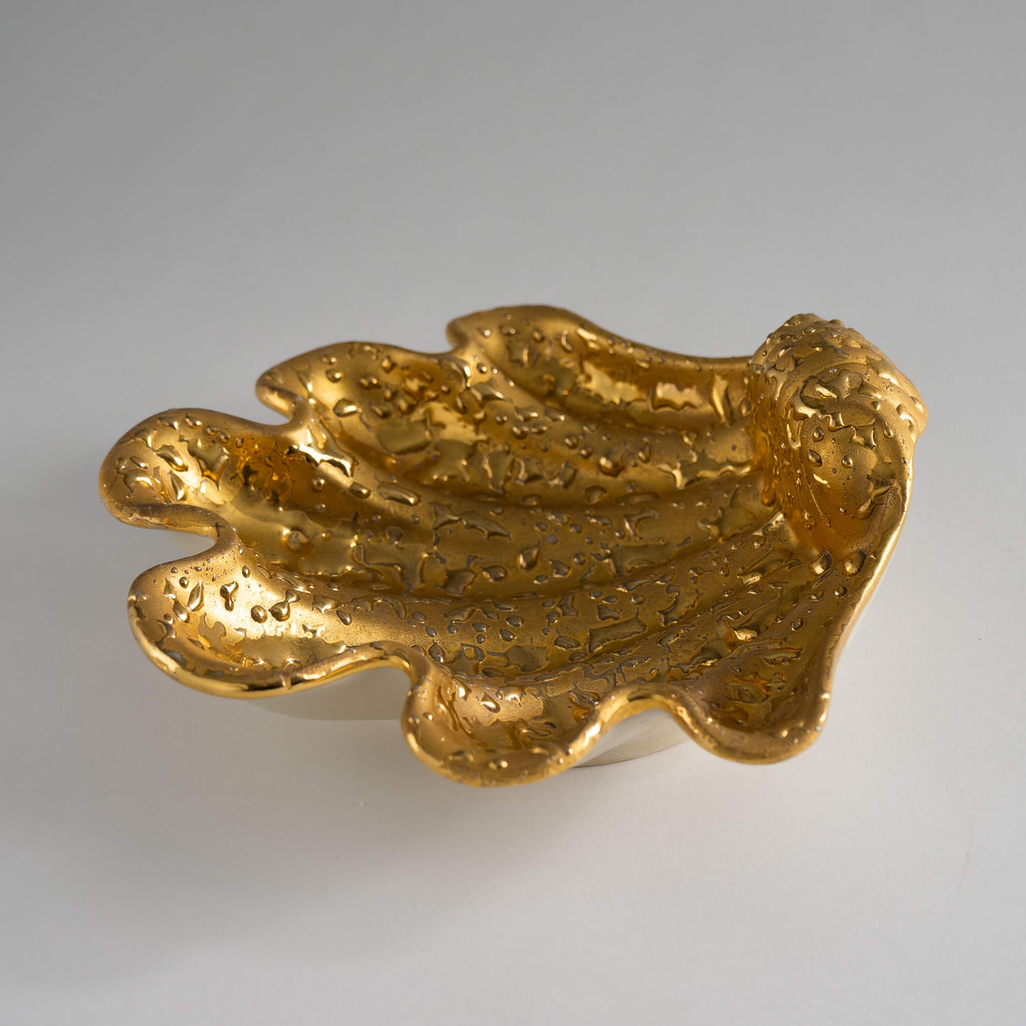 Vintage ceramic shell catchall decorated in 22k gold paint. Use as a catchall dish for jewelry and crystals.