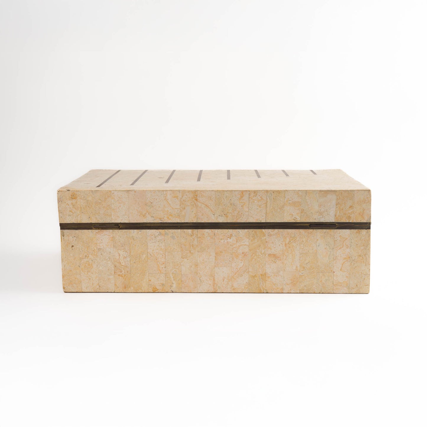 Vintage Maitland Smith Tessellated Stone Jewelry Box with Brass Inlay
